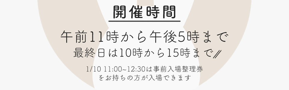 1月10日(土)は12時半頃より当日入場が可能となります1月11日(日)は10時よりご入場が可能です
